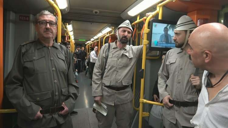 Çanakkale Savaşları'nda en fazla şehit veren illerin başında gelen Bursa’da tiyatro oyuncuları, 18 Mart Çanakkale Zaferi’ni unutturmamak için metro içerisinde gösteri düzenledi.
