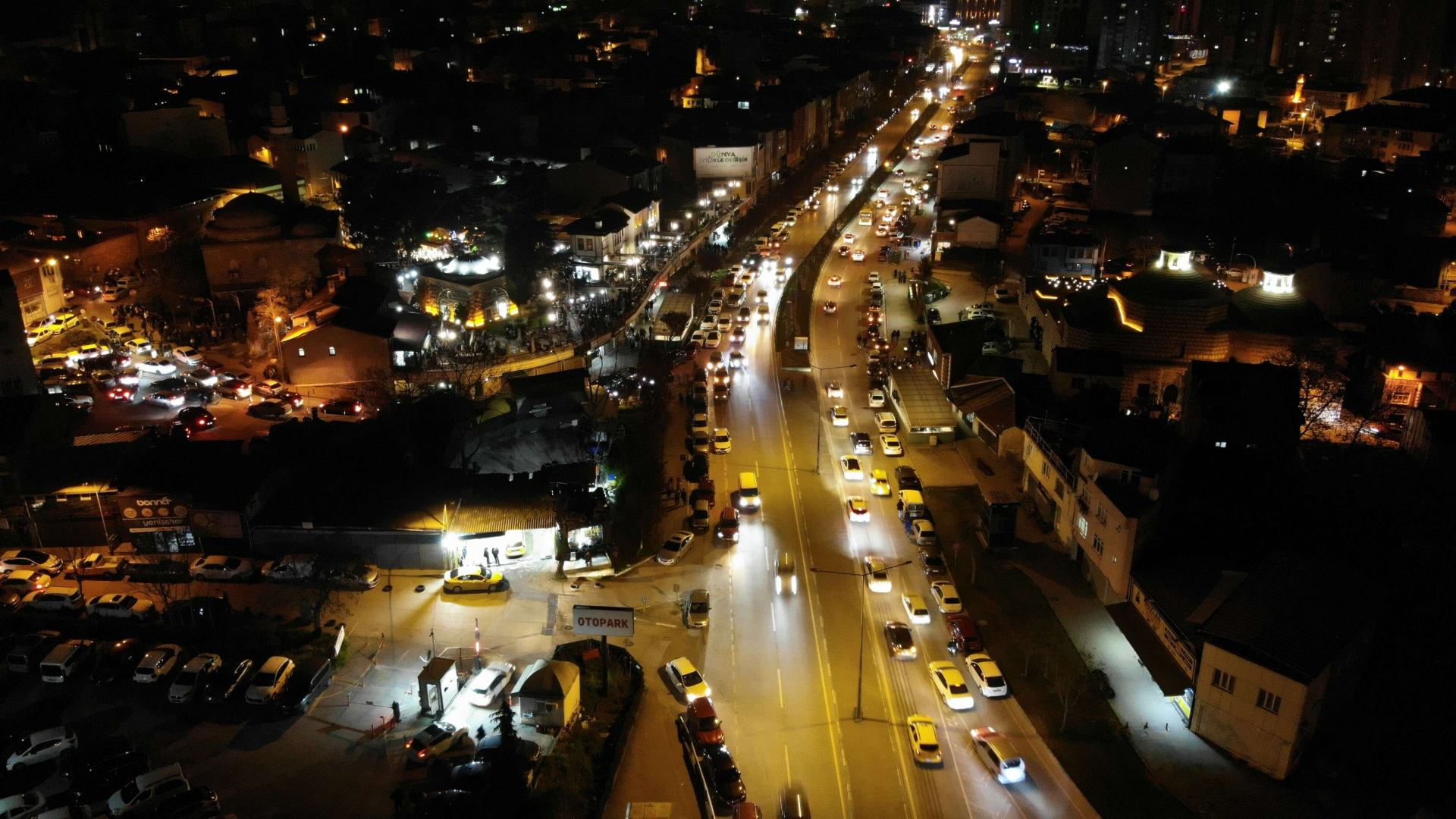 Bursa’da Tarihi Abdal Meydanı'nda simit ve tahinli pide ile sahur yapmak isteyen vatandaşlar metrelerce kuyruk oluşturdu. Havanın da iyi olması sebebiyle adım atılacak yer kalmayan meydan havadan da görüntülendi.