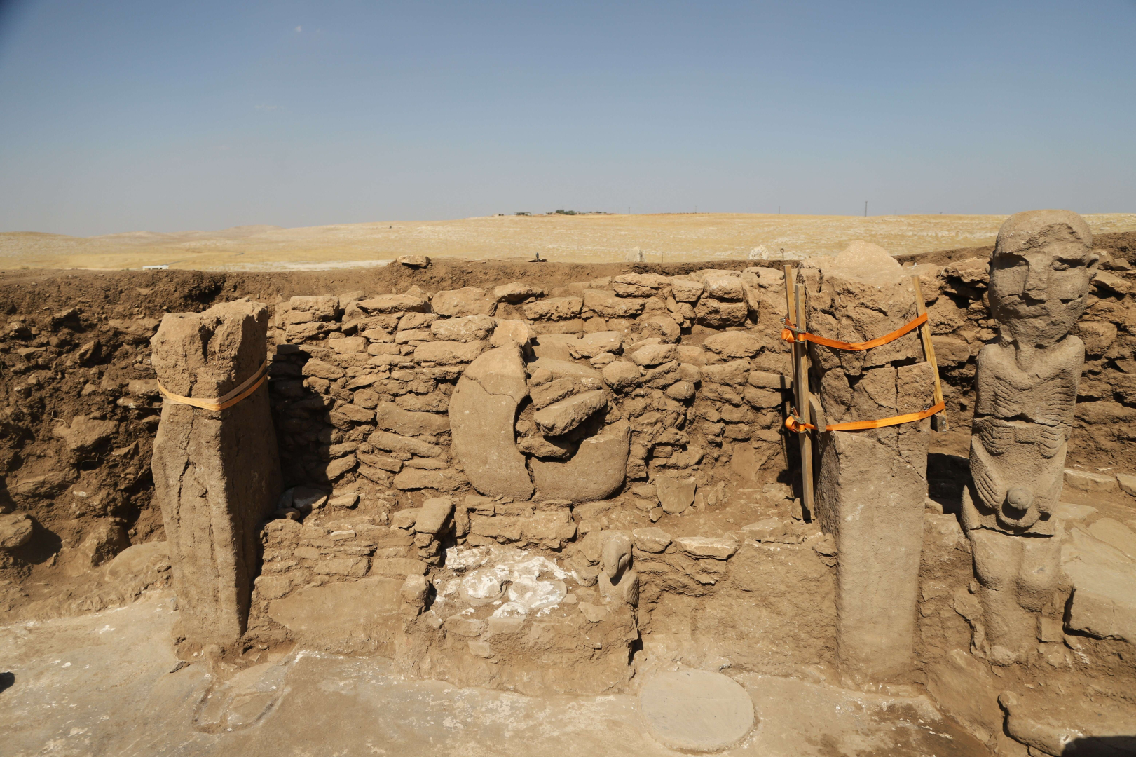 Karahantepe’de sürdürülen kazı çalışmalarında ise dönemin en gerçekçi heykellerinden biri gün ışığına kavuşturuldu. Gerçekçi bir yüz ifadesiyle tarih öncesi sanatın en etkileyici örneklerinden biri olmaya aday 2 metre 30 santimetre yüksekliğindeki heykel bir sekinin içerisinde zemine sabitlenmiş olarak bulundu. Ölü bir insanı çağrıştıran kaburga, omurga ve omuz kemiklerinin vurgulandığı oturur vaziyetteki heykelin bulunduğu alanda duvara yerleştirilmiş bir akbaba heykeli ile zemine bırakılmış taş tabaklara ulaşıldı.