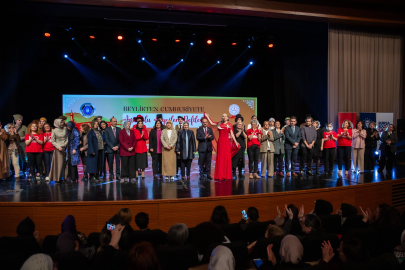 Programın sonunda protokol üyeleri ve enstitü öğretmenleri sahneye çıkarak hep birlikte İstiklal Marşı’nı okuyarak coşkuya ortak oldular.