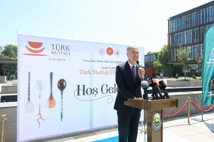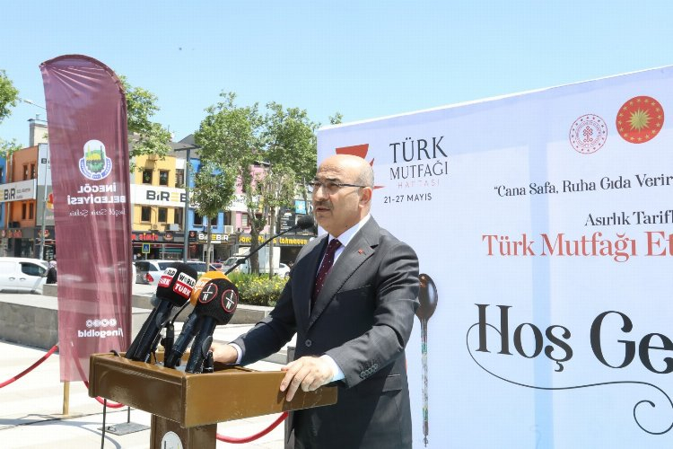 Gastro İnegöl restoranı yanında bulunan alanda protokol konuşmalarıyla başlayan Türk Mutfağı Haftası etkinliklerinde, İnegöl Belediye Başkanı Alper Taban kürsüye çıkarak konuklara hitaben bir konuşma yaptı. Taban, “Bugün Türk Mutfağı Haftası münasebetiyle Bursa’mızda düzenlenen ve ilk ayağı İnegöl’ümüzde yapılan organizasyon için bir aradayız. Kültür Turizm Bakanlığımız tarafından ilan edilen Türk Mutfağı Haftasının 3’üncü yılını kutluyoruz. Burada Valiliğimizin koordinasyonunda İl Kültür Turizm Müdürlüğümüz, Uludağ Üniversitemiz, Kaymakamlıklarımız, Belediyelerimiz ve Bursa Ticaret Sanayi Odamızla beraber düzenlediğimiz organizasyonun açılış etkinliğine İnegöl olarak ev sahipliği yapmış oluyoruz. Geçtiğimiz yıl da Bizimkisi Bir Aş Hikayesi isimli sergiyle Türk Mutfağı Haftası etkinliklerimizi İnegöl’den başlatmıştık. Bu yıl da Evliya Çelebi’nin Seyahatnamesinde ‘Cana safa, ruha gıda verir şerbetim, canım’ diyerek değerini ortaya koyduğu Türk kültürünün eşsiz lezzeti şerbet temasıyla İnegöl özelinde bir aradayız. Bizim aynı zamanda coğrafi işaretli ürünlerimiz var, burada onların da tanıtımlarını gerçekleştiriyor olacağız” dedi.