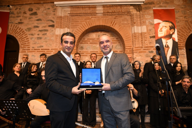 Gecenin sonunda Bursa Büyükşehir Başkan Vekili Sinan Nergiz, gecenin anısına Şef Çetin Erdem Usanmaz'a hediye takdim etti.