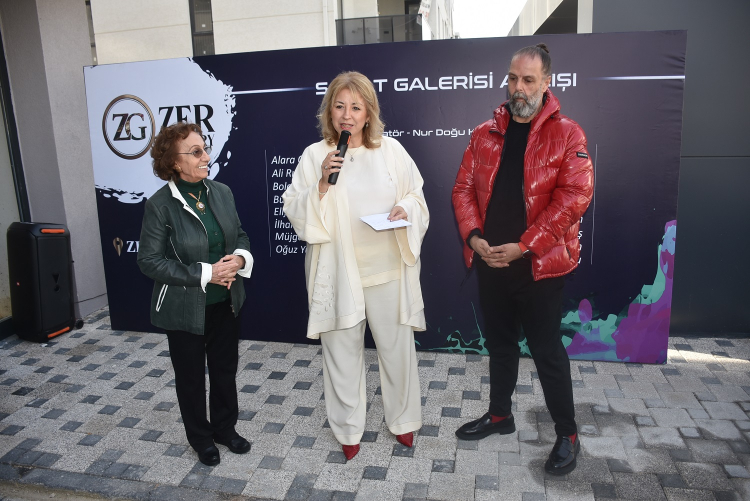 Serginin Küratörü Nur Doğu Koçak da sergide eserleri bulunan sanatçılar Müjgan Özkaya Yılmaz ve Oğuz Yurttadur ile birlikte söz alarak, sanata verdiği değerden dolayı Zerrin Özgüle ve ekibine teşekkür etti.