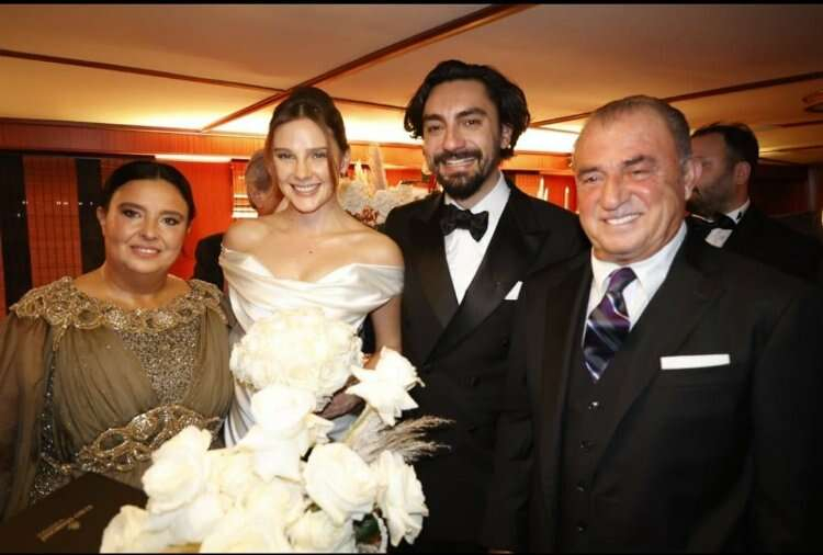 Evirgen’in nikah şahidi olan Fatih Terim, nikah cüzdanını Alina Boz’a verdi.