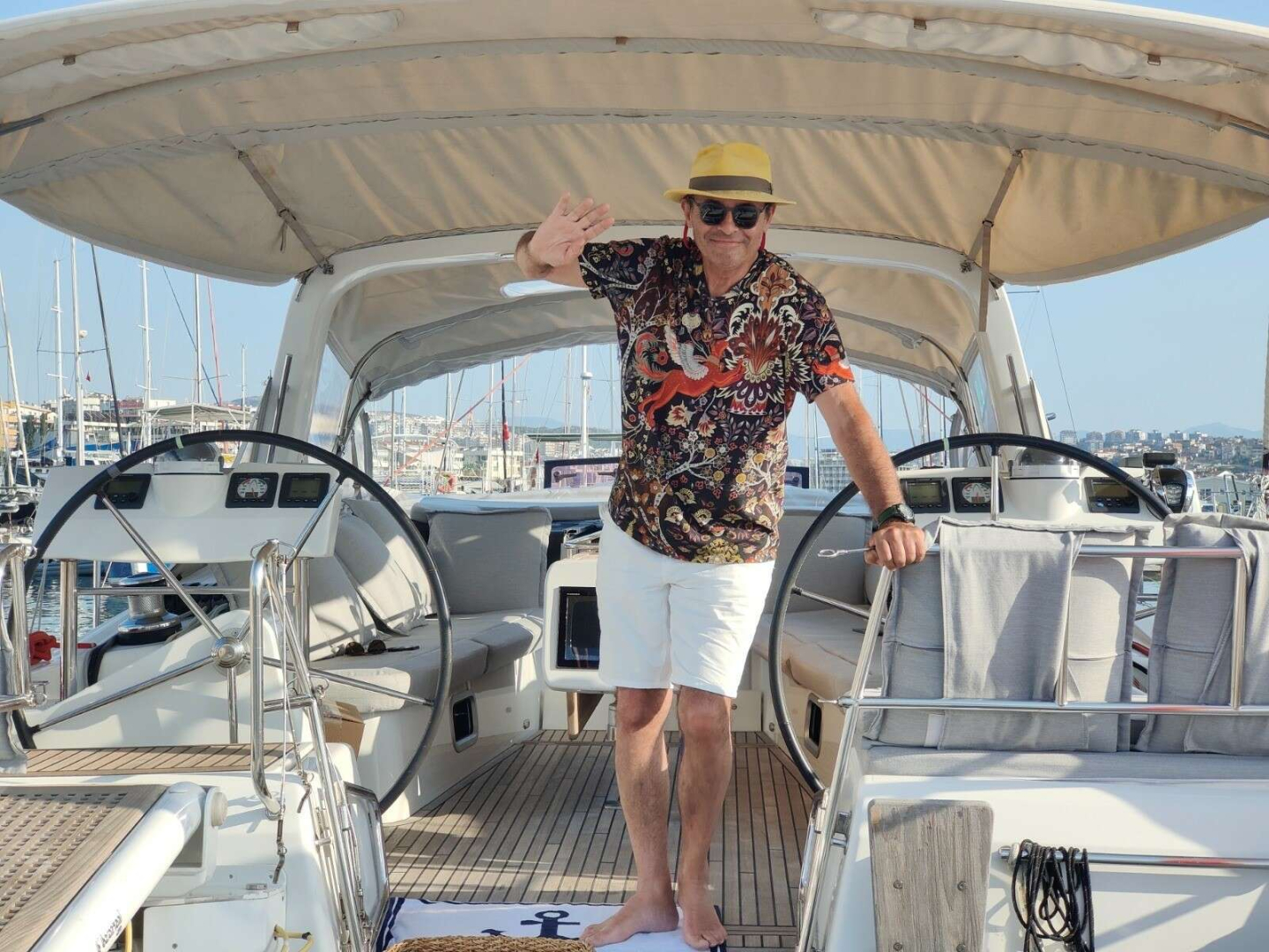 Ünlü müzisyen, televizyon programı yapımcısı ve sunucu Ayhan Sicimoğlu yelkenlisiyle Kuşadası’na geldi. Kenti çok beğendiğini söyleyen Sicimoğlu, “Kuşadası denizi, doğası ve cana yakın insanlarıyla çok güzel bir kent. Kuşadası’nın hastasıyım” dedi.
