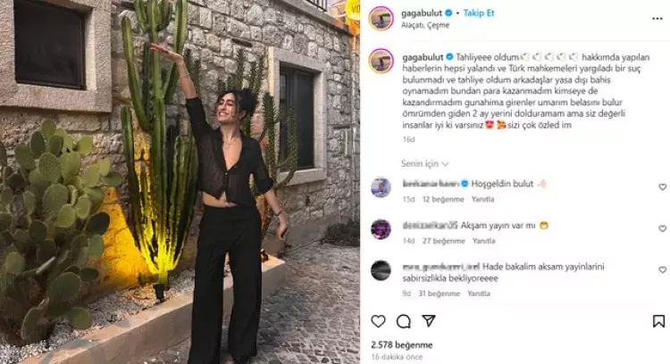 Fenomen Gaga Bulut tahliye oldu! Sosyal medyadan böyle duyurdu