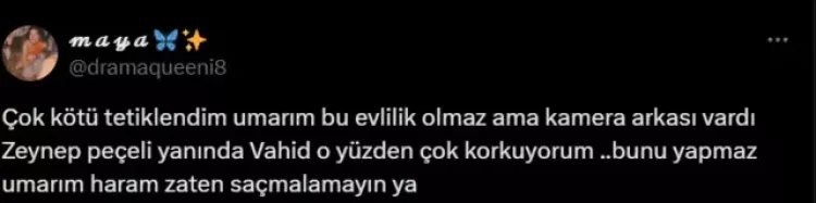 Yayınlanan fragmanlarla heyecanı daha da yükselten dizinin son fragmanında ise ipler iyice gerildi. Gelinlikle ortaya çıkan Zeynep'in zorla Vahit'le evlendirildiği görülüyor. Meryem ise "Zeynep'e sakın dokunma" diyerek Vahit'e karşı çıkıyor. Vahit karakterine ise tepkiler yükseldi.
