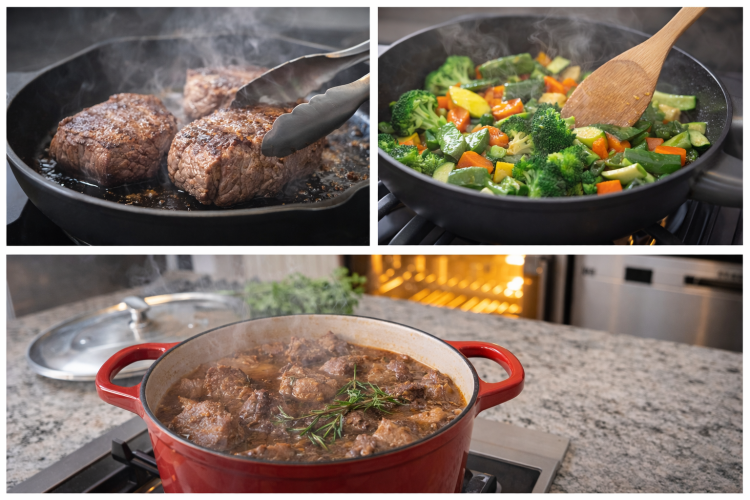 Etleri yüksek ateşte mühürlemek, suyunun içinde kalmasını sağlar. Bu da daha keyifli bir damak zevki sunar.