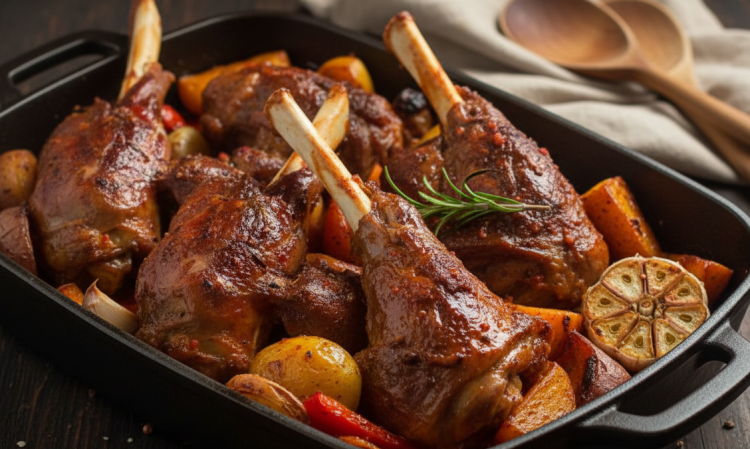 Önceden ısıtılmış 180°C fırında yaklaşık 2.5 - 3 saat pişirin. Etler kemiğinden kolayca ayrılacak kıvama geldiğinde servise hazırdır. Yanında pilav veya patates püresi ile servis edebilirsiniz.