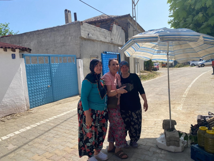 Kirazlı’da köylü kadınların geleneksel kıyafetlerini giyen Perihan Savaş, bahçede üreticilerle birlikte kiraz topladı, meyveleri tek tek inceledi. Samimi tavırlarıyla ilgi gören sanatçı, köy kahvesinde vatandaşlarla çay içip sohbet etti. Hayranlarının fotoğraf isteklerini de geri çevirmeyen Savaş, bol bol hatıra pozları verdi.