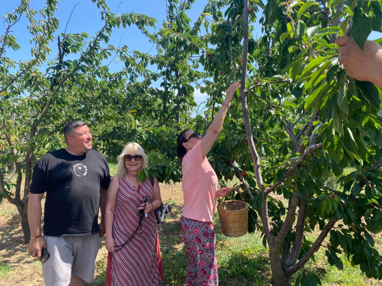Perihan Savaş, Şarköy'de geleneksel kıyafetiyle kiraz hasadına katıldı