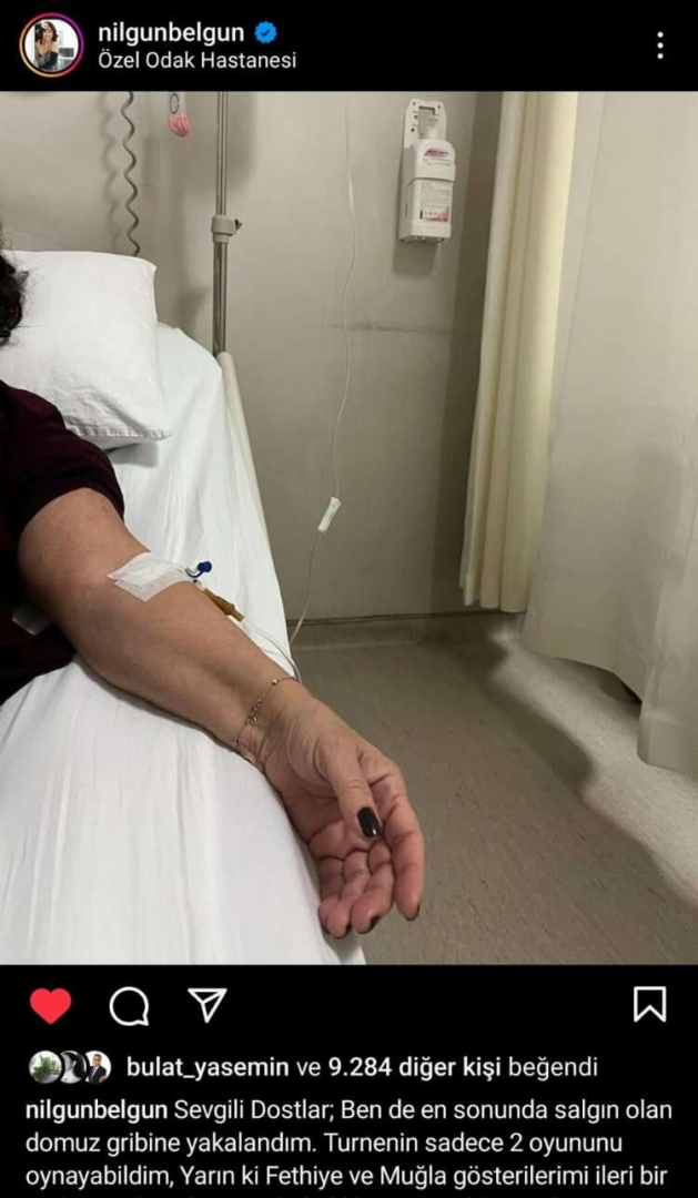 Tiyatro oyunu için Denizli'de bulunan ünlü oyuncu Nilgün Belgün sosyal medya hesabından domuz gribine yakalandığını duyurdu.