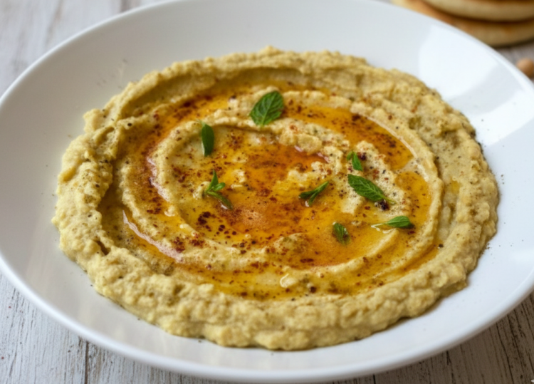-Servis tabağınıza aldığınız ve yaydığınız humusu kimyon, kırmızı pul biber, sumak, kıyılmış maydanoz ile süsleyin.