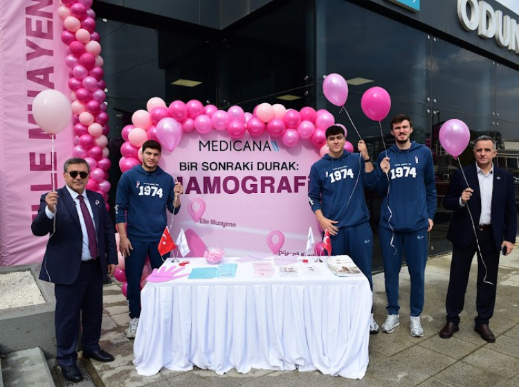 Bursa’da Medicana Bursa Hastanesi personeli, basketbol kulübü oyuncularının da katılımıyla meme kanserinde erken teşhisin önemine dikkat çekmek amacıyla tren istasyonunu pembe balonlarla donattı. Etkinlik kapsamında “Bir Sonraki Durak: Mamografi” sloganı eşliğinde gökyüzüne pembe balonlar bırakıldı.
