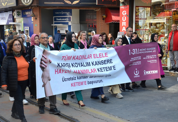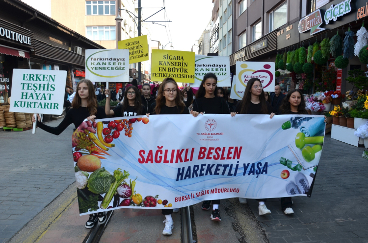Sağlık Bakanlığı tarafından ülke genelinde yürütülen 1-31 Ekim Meme Kanseri Farkındalık Ayı etkinlikleri kapsamında gerçekleştirilen etkinlikte Cumhuriyet Caddesi'nden Zafer Meydanı'na doğru yoğun katılımla gerçekleşen bir yürüyüş yapıldı. Bursa Büyükşehir Belediyesi Bandosu'nun marşlarıyla eşlik ettiği yürüyüşe; İl Sağlık Müdürlüğü Halk Sağlığı Hizmetleri Başkanı Dr. İrfan Oğuz, Kamu Hastaneleri Başkanı Dr. Melike Savaş, sağlık çalışanları, sivil toplum kuruluşları, kanser dernekleri ve öğrenciler katıldı.