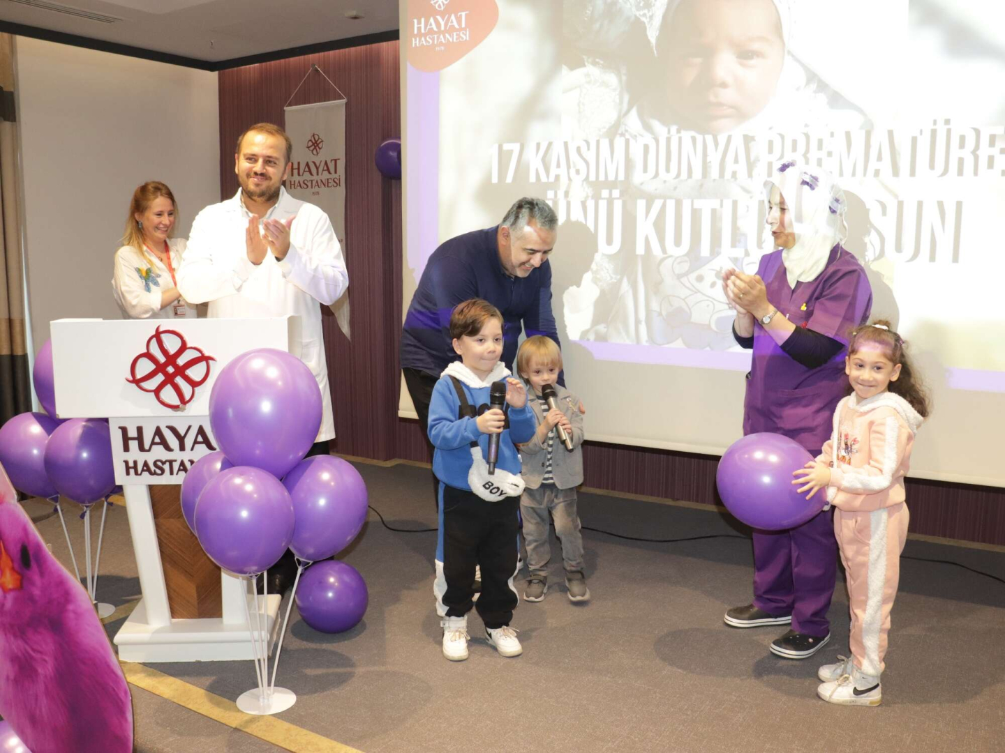 Hayat Hastanesi’nde prematüre olarak doğan bebekler ve aileleri konuk edildi. Mor balonlarla süslenen salonda bir araya gelen aileler ve çocukları müzik dinletisi eşliğinde keyifli dakikalar geçirdi.