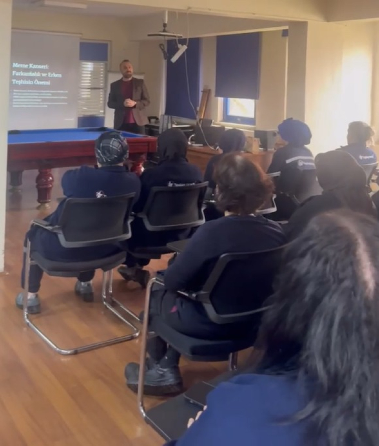 Op. Dr. Doğan Fakıoğlu, Zimaş fabrikasında çalışan kadınlara yönelik düzenlenen seminerde meme kanseri, erken teşhisin önemi ve güncel tedavi yöntemleri hakkında kapsamlı bir sunum gerçekleştirdi.
