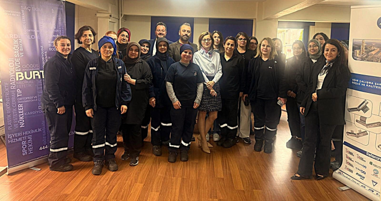 Burtom Konur Cerrahi Tıp Merkezi uzmanı Op. Dr. Doğan Fakıoğlu, Zimaş fabrikasında kadın çalışanlara meme kanserinde erken teşhisin hayati önemini anlattı.
