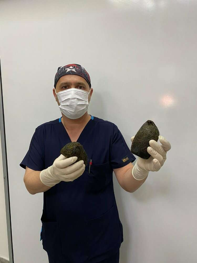 Nadir görülen bir vakanın ameliyatını gerçekleştirdiğini söyleyen Yardımcı Doç. Dr. Seçkin Akküçük,'' Hastamız 40 yaşında kadın hasta yaklaşık bir bir buçuk aydır sürekli sıklıkla olan kusma şikayetiyle daha önce başka merkezlere de başvuruyor. Sonrasında hastanemiz dahiliye kliniğine başvuruyor. Burada genel durum bozukluğu olması sebebiyle ki uzun zaman kusması olduğu için tabii ki vücudun yeterli gıda, mineral vitaminleri alamaması ya da aldıklarını kaybetmesi sebebiyle genel durum bozukluğu ortaya çıkıyor dahiliyedeki hocamız sayın Turgay Güler hocamızla hastamızı genel durum bozukluğu ile yatırıp tetkiklerine başladık. Bu sırada tetkiklerinde bizim de dahil olduğumuz tetkiklerinde mide ve ince bağırsaklarında tıkanıklığa yol açan midesini tamamına yakını dolduran ince bağırsakta tıkanmaya yol açan büyür kıl yumakları bizim Trikobezoar dediğimiz sindirilmemiş gıdalardan ya da kıl yumaklarından ya da bazı ilaçlardan oluşan bezoarın olduğunu tespit ettik. Hastamızın genel durumunun toparlanmasını biraz daha bekledik gerekli destek ve tedaviyle hastamız genel durumu artık ameliyata uygun hale geldikten sonra dün ameliyatımızı gerçekleştirdik. Midesinden 2 adet yaklaşık 12-13 santimetrelik ve ince barsağını tam tıkayan yaklaşık 10-11 santimetrelik 2 adet bezoar çıkardık. Şu an hastamızın genel durumu gayet iyi kusmaları ortadan tabii ki kalktı. Bundan sonra iyileşme safhasındayız. Hastamız inşallah birkaç gün içerisinde sağlıklı şekilde taburcu etmeyi planlıyoruz 'dedi.