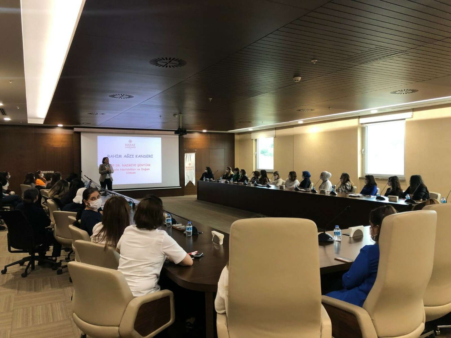 Özel Hayat Hastanesi Kadın Hastalıkları ve Doğum Uzmanı Op. Dr. Nazmiye Şentürk, dünyada her yıl 274 bin kadının hayatını kaybettiği rahim ağzı kanseri hakkında Otoyol Yatırım ve İşletme’nin kadın çalışanlarını bilgilendirdi.