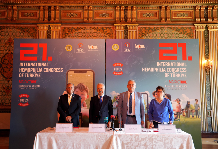 21’inci Uluslararası Türkiye Hemofili Kongresi İstanbul Üniversitesi rektörlük binasında düzenleniyor. Kongrede Türkiye’den ve dünyadan uzman hekimler, hemofilinin tedavi yöntemlerindeki bilimsel araştırmalar ve yenilikleri çeşitli oturumlar ile ele alıyor. Kongrenin ikinci gününde düzenlenen basın toplantısının açılış konuşmasını Türkiye Hemofili Derneği Başkanı ve İstanbul Üniversitesi Rektörü Prof. Dr. Bülent Zülfikar yaptı. Toplantıda konuşmacı olarak Dünya Hemofili Federasyonu Başkanı Cesar Garrido, Hemofili Federasyonu ve Kongre Başkanı Prof. Dr. Kaan Kavaklı ve Lyon Üniversitesi Hemostaz Merkezi Başkanı Prof. Dr. Yeşim Dargaud yer aldı.