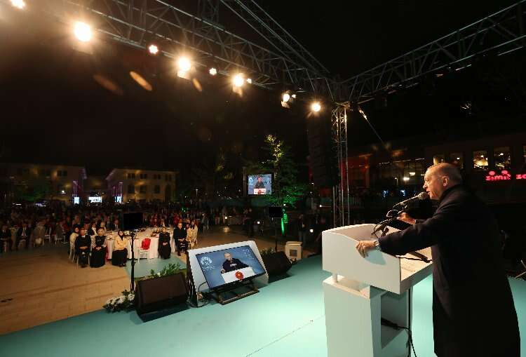 Beşiktaş'taki yangın faciasına değinen Cumhurbaşkanı Erdoğan, "Ağızlarını her açtıklarında hak, hukuk, adalet kavramları üzerinden gönüllü kuruluşlarımıza dil uzatanların iki yüzlülüklerini çok iyi biliyoruz. Sürekli ahlak tüccarlığı yapan, sürekli işçinin, emekçinin hakkından bahseden bu çevreler önceki gün Beşiktaş'taki yangında hayatını kaybeden 29 emekçi kardeşimizle ilgili çıkıp tek cümle kurmadılar. Bu binaya inşaat ruhsatını veren, imar ruhsatını veren ve binanın en alt bodrum katlarını gazino haline getirmeyi müsaade edenler kim? Şimdi tabii ki biz de savcılarımızla takip ediyoruz. Bunu kovalıyoruz. Kovalamaya da devam edeceğiz. Kimler bunlar? 29 tane orada vatandaşımızın ölümüne göz yumanlar kimler? Biz de kovalayacağız. Zerre kadar vicdanı olan herkesin tepkisini çekmesi gereken skandallar zinciri karşısında başlarını kuma gömmeyi tercih ettiler. Birileri hemen anında koşup gittiler. Niye? Çünkü kendi günahlarını nasıl örteriz bunun peşinde koştular. Bölücü terör örgütünün sokakta yakıp yıkan mandallarıyla sergiledikleri dayanışmayı rızkının peşindeki insanların ailelerine çok gördüler. Daha önce aynı vicdansızlığı evlatlarını bölücü alçakların pençesinden kurtarmak için çırpınan cesur Diyarbakır annelerine de bunlar göstermişlerdi. Sırf ittifak ortaklarını kızdırmamak için yüreği kan ağlayan bu anneleri yalnız bırakmışlardı. Biz yaklaşık yarım asırdır, vakfımız ise 28 yıldır çetin bir mücadelenin içindeyiz. Bu zorlu süreçte sizlere hizmet etmekten sizlere en iyi en donanımlı bir şekilde hayat hazırlamaktan başka gayemiz olmadı. Sizlerin başarılarını gördükçe hep daha fazla çalıştık. Bu ülkeyi yüceltecek bu çağa mührünü vuracak olan sizlersiniz. Bunun için kendimizi başkalarına göre tanımlayacak, başkalarına göre sizi kendi kalıplarına hapsetmelerine izin vermeyeceğiz. Kimsenin bizim özgüvenimizi örselemesine hayallerimizle aramıza set çekmesine müsaade etmeyeceğiz. Bizler sadece 100 yıllık bir devletin mensupları değiliz. Bizler aynı zamanda bu coğrafyada bin yıllık bir cihan imparatorluğunun bin 400 yıllık köklü bir medeniyetin de takipçileriyiz" dedi.