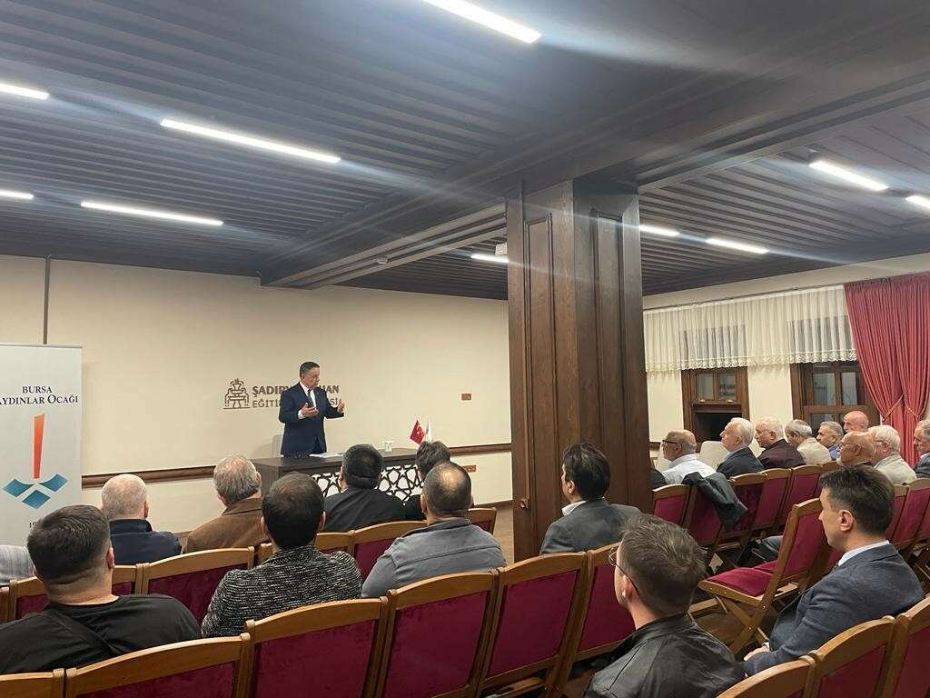 Konuşmanın ardından soru cevap bölümündeki sorulara da yanıt veren Alfatlı’ya Bursa Aydınlar Ocağı Başkanı Ali Seydi Çakırel de teşekkür etti.