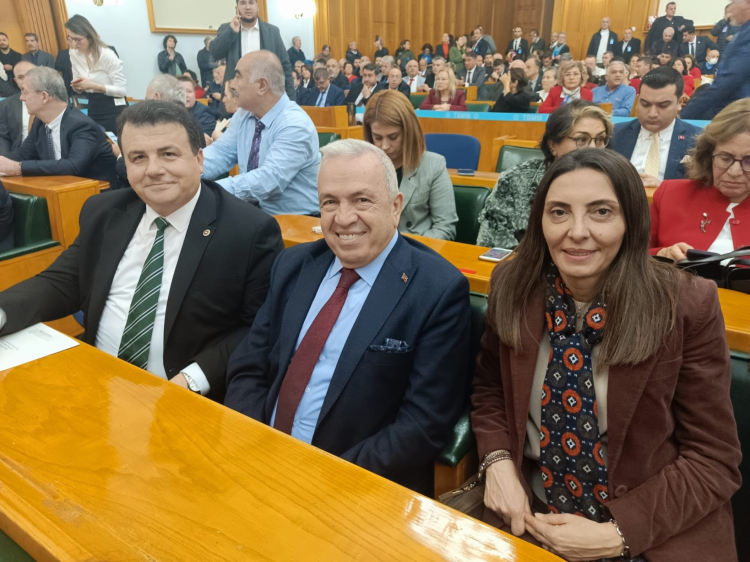 Başkan Şadi Özdemir önderliğindeki heyet, daha sonra da TBMM’yi ziyaret ederek, CHP Grup Toplantısı’na katıldı. CHP Genel Başkanı Özgür Özel’in ağırlıklı olarak geçim sıkıntısı ve ekonomik pahalılık ile ilgili değerlendirmelerini dinleyen katılımcılar, toplantının ardından CHP Bursa Milletvekilleri Orhan Sarıbal ve Hasan Öztürk’ün de katılımıyla CHP Genel Başkanı Özgür Özel’i TBMM’deki makamında ziyaret etti. CHP Genel Başkanı Özgür Özel ile Bursa ile ilgili görüş alışveriş bulunan Başkan Şadi Özdemir, “Genel Başkanımızı Bursamızda bir kez daha ağırlamak istiyoruz” dedi. Başkan Şadi Özdemir, nazik misafirperverlikleri için de Genel Başkan Özel’e teşekkür etti.