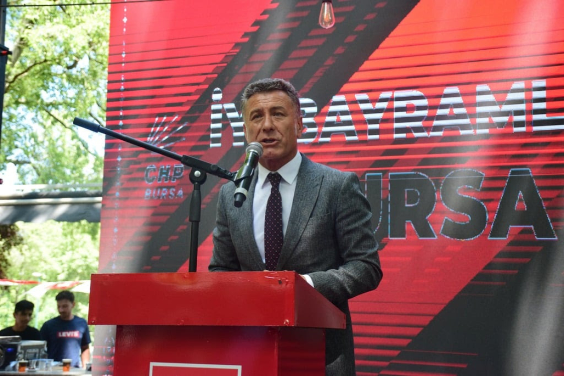 Bayramlaşma töreninde kürsüye çıkan ilk isim CHP Bursa İl Başkanı Nihat Yeşiltaş oldu.