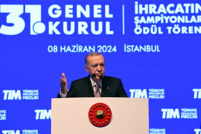 Cumhuriyet tarihimizin ihracat rekorunu kırdıklarını kaydeden Cumhurbaşkanı Erdoğan, “Türkiye'nin dış ticarette sizin de emeklerinizle yazdığı başarı hikayesini yalnızca biz değil rakamlar da çok net biçimde söylüyor. Rusya-Ukrayna savaşına ve 6 Şubat depremlerine rağmen hamdolsun 2023 senesinde ihracatta güzel bir yıl geçirdik. 2023 yılı 255,4 milyar doları mal ihracatı, 101,7 milyar doları hizmetler ihracatı olmak üzere toplam 355 milyar dolar ihracatla kapattık. Bu ihracat miktarıyla geçen sene Cumhuriyet tarihimizin rekorunu kırdık. Geçtiğimiz hafta açıklanan rakamlarla bunu bir üst seviyeye taşıdık. 24,1 milyar dolar mayıs ayı ihracatımız, tarihin en yüksek mayıs ayı ihracat değeri olarak kayıtlara geçti. Bu rekor, yeni bir rekoru da beraberinde getirmiştir. Mayıs ayı ihracatımız aynı zamanda tüm ayların en yüksek aylık ihracat değeri oldu. Mayıs ayı itibarıyla yıllık andırılmış ihracatımız 260,1 milyar dolar ve bir önceki yıla göre yüzde 2,3 artışla yine rekor kırdı. İhracattaki güzel haberlere ithalat tarafından gelen olumlu veriler de eşlik ediyor. İthalatımızdaki düşüş eğimi, mayıs ayında da devam etti. İthalatımız, mayıs ayında yıllık bazda yüzde 10,3 oranında geriledi. 2024 yılı mayıs ayında ihracattaki artış ve ithalattaki azalmanın da etkisiyle dış ticaret açığımız yıllık bazda yüzde 47,8 düşüş gösterdi. 2024 yılının ilk 5 ayında ise ihracatımız bir önceki yılın aynı dönemine kıyasla yüzde 4,5 artışla 106 milyar 914 milyon dolara çıktı. Böylece ilk 5 ayda mal ihracatında net 4,6 milyar dolar artış sağladık. Dış ticaret açığımızdaki iyileşme sürüyor. İlk 5 ayda dış ticaret açığımız 19,2 milyar dolar azaldı. Mal ihracatımızdaki artışın yanında hizmet ihracatında da 2024 yılı hedeflerimize yaklaşıyoruz. Yılın ilk 3 ayında hizmet ihracatımız bir önceki yılın aynı dönemine göre yüzde 8 artış göstererek 19,9 milyar dolar seviyesinde gerçekleşmiştir. Yılın ilk 5 ayında hizmet ihracatımızın bir önceki yılın aynı dönemine göre yüzde 8 artışla 36,2 milyar dolara yükseleceğini tahmin ediyoruz. Yıllıklandırılmış olarak 2024'ün ilk 3 ayı sonunda 103,2 milyar dolar hizmet ihracatımızın ilk 5 ay sonunda 104,3 milyar dolara yükseleceğini öngörüyoruz. Cari işlemler açığındaki iyileşme, dış ticaret dengesindeki iyileşme, ticaret ortaklarımızda toparlanma ve turizm gelirlerindeki artışla orta vadeli program hedeflerinden çok daha iyi gerçekleşecek. Cari açıktaki azalma hem rezerv birikimini müspet etkileyecek hem de finansal istikrara destek olacaktır. 2024 sonunda mal ihracatımızı 267 milyar dolara ve hizmet ihracatımızı ise 110 milyar dolara mutlaka taşıyacağız. Bunu da son 21 yıldır olduğu gibi yine sizlerle birlikte başaracağız. İhracata ve ihracatçılarımıza verdiğimiz desteğin artarak devam etmesi, Türkiye'ye farklı bir ivme kazandırmıştır. İhracatımızın katma değerli ve yüksek teknolojili sektörlere yönlendirilmesini arzu ettiğimizi farklı vesilelerle ifade ettik. Firmalarımızın finansman sorununa çözüm bulunmasının ne kadar önemli olduğunu farkındayız. Hazine Bakanlığımız ve Merkez Bankamız ihracatçılarımızın finansman imkanlarını geliştirmek için farklı formüller üzerinde çalışıyor” açıklamasında bulundu.