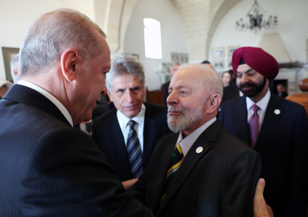 Cumhurbaşkanı Recep Tayyip Erdoğan, İtalya’nın Puglia bölgesindeki Borgo Egnazia'da düzenlenen G7 Devlet ve Hükümet Başkanları Zirvesi'ne katılıyor. Zirve alanına gelen Cumhurbaşkanı Erdoğan, ev sahibi İtalya Başbakanı Giorgia Meloni tarafından karşılandı. Erdoğan zirve öncesi davetli ülkelerin lideriyle ayaküstü sohbet etti.