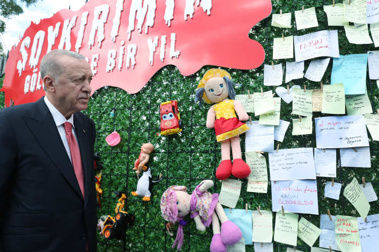 Cumhurbaşkanı Recep Tayyip Erdoğan, AK Parti Genel Merkez Kadın Kolları tarafından oluşturulan "Soykırımın Gölgesinde Geçen Bir Yıl" sergiyi gezdi.