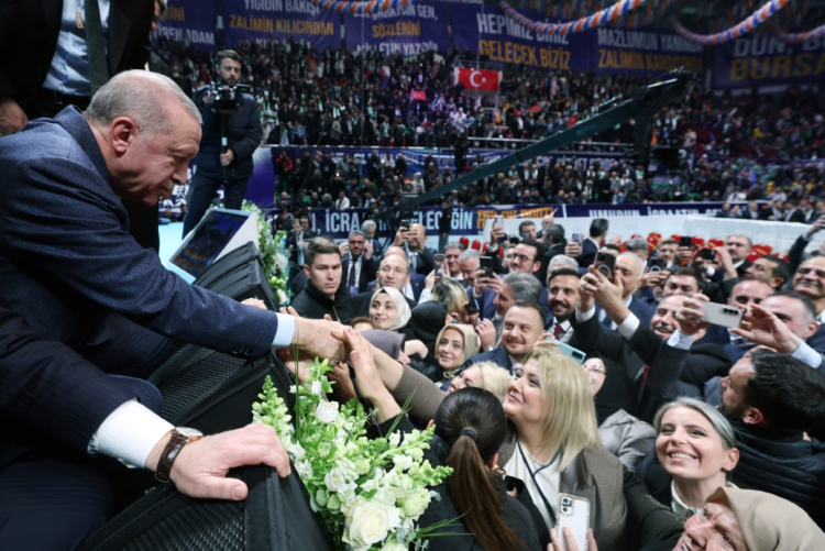 Erdoğan, AK Parti siyasetinin hizmet ve eser siyaseti olduğunu belirterek, "Bizim siyasetimiz millete karşı dürüst şeffaf olma siyasetidir. Biz de tüm meşakkate rağmen sadece bunu yapmaya çalışıyoruz. Türkiye ve Türk milletine borcumuzu layıkıyla ödemenin derdindeyiz. Partimize ittifakımıza ve iktidarımıza güvenen bu aziz millete hayal kırıklığı yaşatmak istemiyoruz. Günübirlik hesaplar, ülkemizin yakın geçmişinde bu millete çok vakit ve nakit kaybettirdi. Kim ne veriyorsa benden 5 fazlası anlayışı geçmişte Türkiye’ye çok ağır bedeller ödettirdi. Sırf günü kurtarmak için verilen ancak sonra unutulan sözler hem bu ülkeye hem de siyaset kurumuna çok büyük zararlar verdi. Benden sonrası tufan diyenler geride telafisi yıllar sürecek enkaz bıraktılar. Hesap kitap yapmadan bol keseden vaat dağıtanlar arkalarında tamiri imkansız hasarlar bıraktılar. AK Parti olarak bu ucuz siyaseti 2002’den beri elimizin tersiyle ittik. Kendimiz bedel ödesek dahi millete ve ülkeye bedel ödettirmeyeceğiz dedik. Her şartta Türkiye için en iyisini yapacağız zor da olsa en doğru kararı alacağız dedik. Hamdolsun bu duruşumuzdan da şimdiye kadar taviz vermedik. Siyaset kurumuna güveni yeniden biz tesis ettik. Türkiye’nin asırlık sorunlarına çözüm yollarını biz geliştirdik. Ülkeyi küresel şoklara dirençli hale biz getirdik. Ulaştırmada konutta enerjide tarımda çalışma hayatında savunma sanayinde Türkiye tarihinin en büyük şahlanışını bizimle yaşadı. 22 yıl önce hayal dahi edilemeyen büyük dönüşümleri büyük reformları ülkemizde biz gerçekleştirdik. Artık dünyada sözünün ağırlığı olan itibarı artan ay yıldızlı bayrağı başta komşuları olmak üzere tüm dünya için güven veren bir Türkiye var. Tüm bu söylediklerimi ve çok daha fazlasını hep yere sağlam basarak adımlarımızı sağlam atarak yaptık. Bugün de aynı prensipler çerçevesinde hareket ediyoruz. Şahsi çıkarlarımızı değil sadece 85 milyon vatandaşıyla tüm Türkiye’nin menfaatini düşünüyoruz. Açık yüreklilikle dile getirdim. Ekonomi programımızın temel gayesi sabit gelirliler başta olmak üzere milletimizin kur ve enflasyon sebebiyle refah kaybını en kısa sürede telafi etmektir. Hayat pahalılığı mazereti olarak kullanılan hususları ortadan kaldırmamız gerekiyor. Uyguladığımız programın önceliği enflasyonu düşürmektir. Dünyanın her yerinde olduğu gibi ülkemizde de enflasyon adeta tüm kötülüklerin anası konumundadır. Aç gözlü fırsatçıların ne enflasyon ne kurla ne faizle izah edilmeyecek keyfi fiyatlandırma alışkanlıkları elbette bizim işimizi kolaylaştırmıyor zorlaştırıyor. Serbest piyasa ekonomisini başı bozukluk olarak algılayan ve bunu alabildiğine istismar eden bir kesim var. Bunların da üstesinden geleceğiz. Esasen bu konuda en etkili yöntem milletimizin fahiş fiyat artışı yapan ürün ve hizmetleri boykot etmeleridir. Satılmayan ürünün kullanılmayan hizmetin alıcısı olmaz. Gelişmiş bazı ülkelerdeki tüketiciler bunu bilinçli yaparak hükümetlerine yardımcı oluyor. Bizde de bu kültür gelişecek ve oturacaktır. Devletin ilgili kurumları bir taraftan tüketici diğer taraftan çift kanatlı mücadele ile inşallah tamahkarlık meselesini hal yoluna koyacağız. Şunu söylemek zorundayız hem enflasyon artışında hem de onu aşan hayat pahalılığı artışında konut ve kira fiyatları çok önemli rol oynuyor. 2024 yılında bu unsurların enflasyona etkisini gördük"