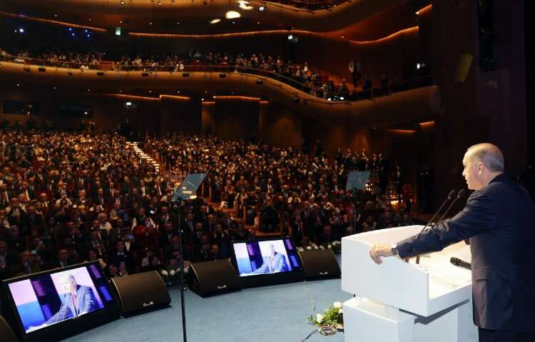Cumhurbaşkanı Erdoğan, hükümet olarak son 21 yılda siyasetteki vesayet sistemini bitirdiklerini söyleyerek, "Kültür sanat alanındaki vesayeti bitirmekte hala muvaffak olamadık. Kendi dünya görüşünden olduğu için katillere, teröristlere, tacizcileri ülke ve millete düşmanlarına leke kondurmuyorlar. Müzik kutusu misali parasını verenin plağını çalan bu çevrelerin temel özelliği her seferinde ülkenin karşısında konumlanmasıdır. Hak ve özgürlükler konusunda ahkam keserler ama başörtüsü yasağına bir şey söylemezler. İnsan haklarında mangalda kül bırakmazlar ama Gazze'de devam eden İsrail vahşeti karşısında bir kelime etmezler” şeklinde konuştu.