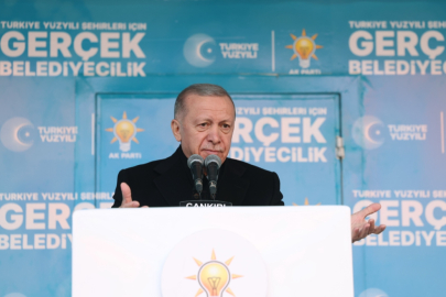 Cumhurbaşkanı Recep Tayyip Erdoğan, Çankırı’da düzenlenen mitingde konuştu. Çankırı il merkezindeki Belediye Meydanı’nda gerçekleştirilen miting alanını binlerce vatandaşa seslenen Cumhurbaşkanı Recep Tayyip Erdoğan, muhalefeti eleştirerek, "Biz Çankırı ile tüm Türkiye için canla başla çalışırken CHP’nin başını çektiği muhalefetin durumu ise gerçekten içler acısı. Ne millete hizmet etmek niyetindeler, ne de bu yönde bir çabaları var. Vizyon, proje, ufuk, eser, icraat desen zaten hak getire. Ziya Paşa’nın güzel bir beyti var, ‘eşek ölür kalır semeri, insan ölür kalır eseri.’ Biz hizmet ve eser bırakıyoruz. Muhalefet bavullarla, valizlerle, çantalarla taşınan balya balya paralar dışında elle tutulur hiçbir işleri yok. Dolar çantalarda, bavullarda, avrolar çantalarda, bavullarda. Nereye kadar böyle gideceksiniz, 31 Mart’a kadar. 31 Mart’ta bizim milletim sizi sandıklara gömecek. Bir büroda 5-6 kişi toplanıp nereden geldiği ve nereye gittiği belli olmayan şaibeli paralarla saatlerce kule yapıyor. ‘Açıkla’ deyince panikle sağa sola saldırıyorlar. Hatırlarsınız, bunlar son seçim yenilgisinin ardından değişim diye bir şey başlatmışlardı. Güya kendilerini yenileyecek, faşist zihniyetlerini değiştirecek, milletle artık kavga etmeyeceklerdi. Sonuç, tam bir fiyasko oldu” dedi.