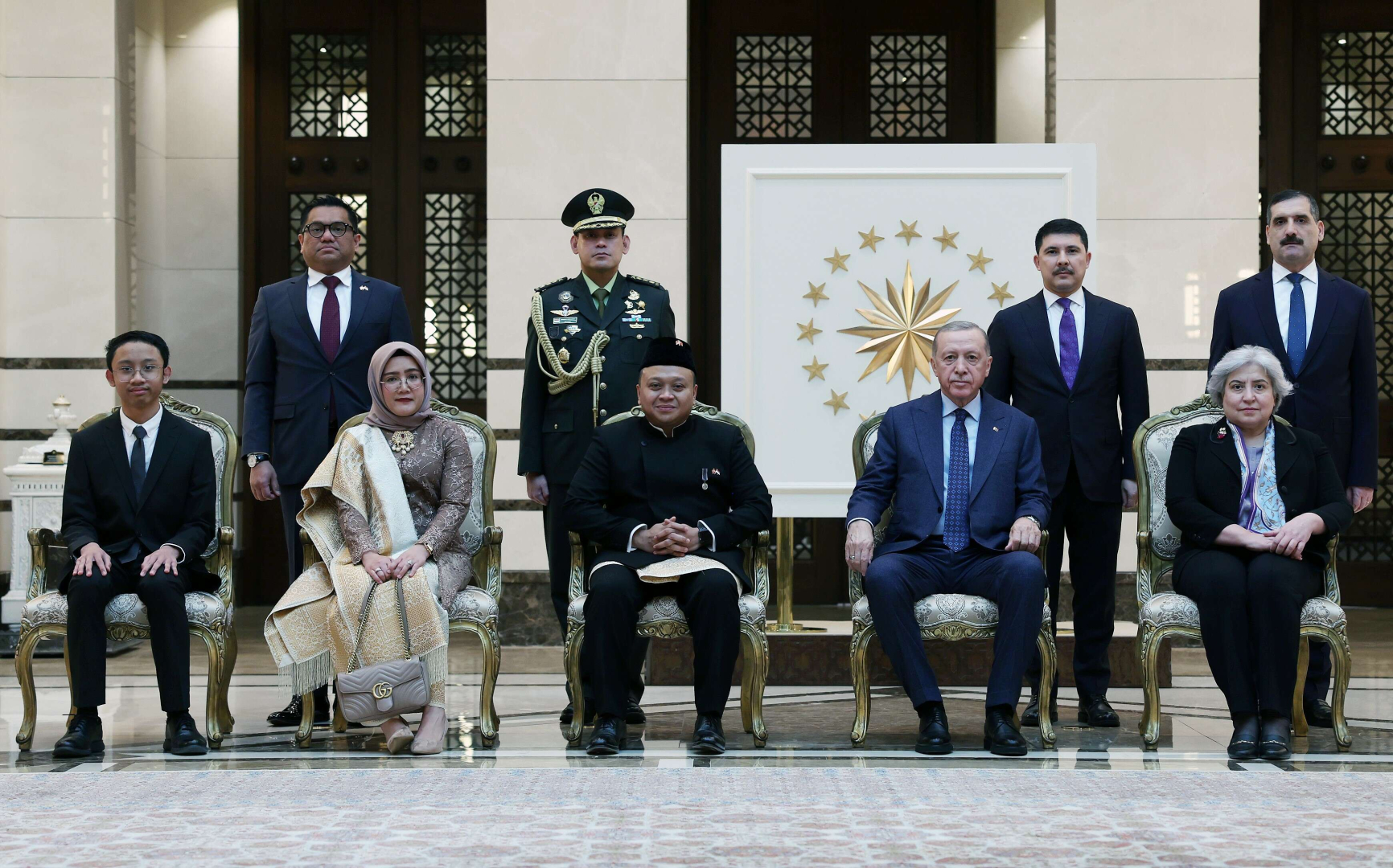 Cumhurbaşkanlığı Külliyesi'ndeki kabulde Endonezya Büyükelçisi Achmad Rizal Purnama, Venezuela Büyükelçisi Freddy Eduardo Molina Gutierrez ve Kanada Büyükelçisi Kevin David Hamilton, Cumhurbaşkanı Erdoğan'a güven mektubu sundu. Büyükelçilerin aileleri ve bazı büyükelçilik mensuplarını Cumhurbaşkanı Erdoğan'a takdiminin ardından hatıra fotoğrafı çektirildi.