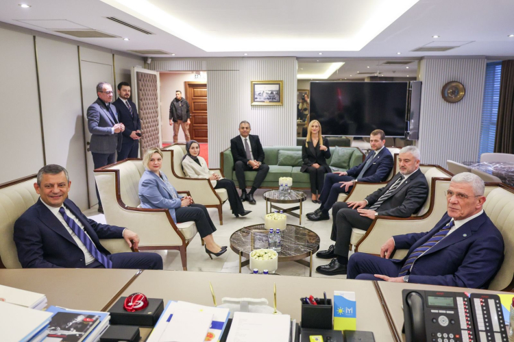 CHP Genel Başkanı Özgür Özel, İYİ Parti 4. Olağan Kurultayı'nda yeniden genel başkanlığa seçilen Müsavat Dervişoğlu'nu ziyaret etti. İYİ Parti Genel Merkezi'nde gerçekleştirilen görüşme yaklaşık 1 saat sürdü. İki genel başkan, görüşmenin ardından ortak basın açıklamasında bulundu. Müsavat Dervişoğlu, görüşmede ele alınması gereken bütün konuları değerlendirdiklerini ifade ederek, "Bunların içerisinde Cumhuriyet Halk Partisi'ne yönelik yargılamalarla alakalı yaşananlar da dahil olmak üzere kapsamlı bir görüş alışverişinde bulunduk. Emeklilerin meselelerini ele aldık. Gençlerin sorunlarını ele aldık. Demokrasimizin karşı karşıya bulunduğu problemlerle ilgili olarak da fikirlerimizi paylaştık. Bununla birlikte Türkiye'de yaşanan süreçle ilgili Türkiye Büyük Millet Meclisi'nde kurulmuş komisyon, o komisyonun raporu üzerindeki çalışmalar, bu zamana kadar yapılmış olanlara dair de düşüncelerimizi ifade ettik. Daha önce de defalarca belirttiğim gibi çözüm süreci adı verilen ihanet projesinin amacı Cumhuriyetimizin temel niteliklerini tartışmaya açmaktır. Bunu yeniden ifade ettim. Bunu başarmak için ise önce kelimeleri ve imajları değiştirmeye çalıştıklarını dile getirdim" diye konuştu.