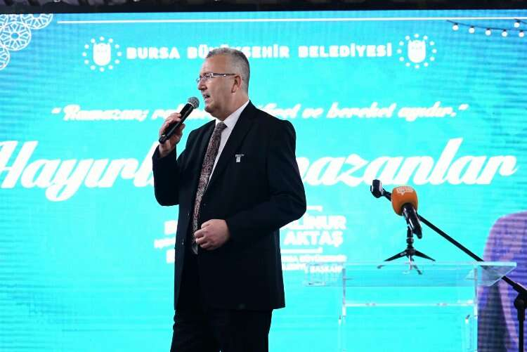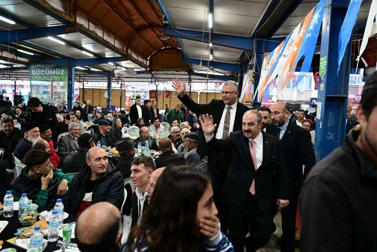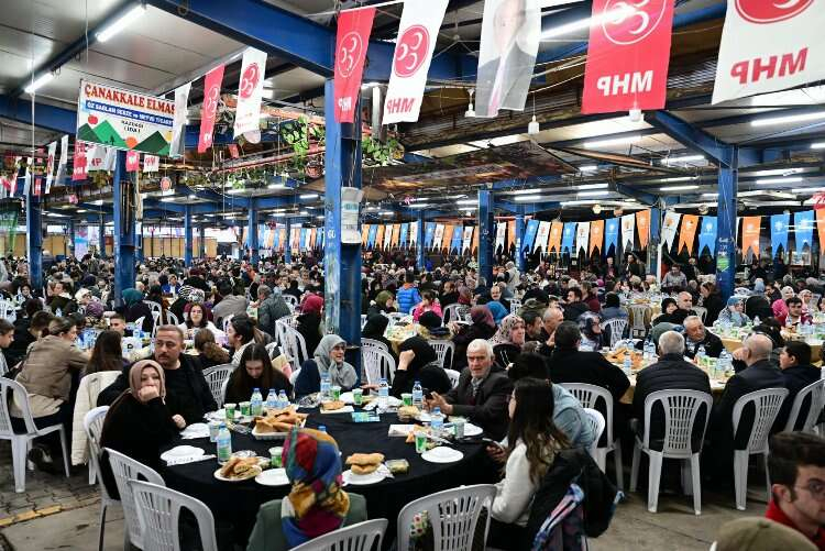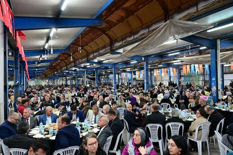 7 bine yakın kişinin oturarak, yaklaşık 3 bine yakın kişinin de ayakta katılımıyla yaklaşık 10 bin kişinin katılımıyla Ömer Matlı Kapalı Pazaryerinde gerçekleşen iftara, önceki dönem Sanayi ve Teknoloji Bakanı ve AK Parti Bursa Milletvekili Mustafa Varank da katılırken, iftarda birlik ve beraberlik öne çıktı.