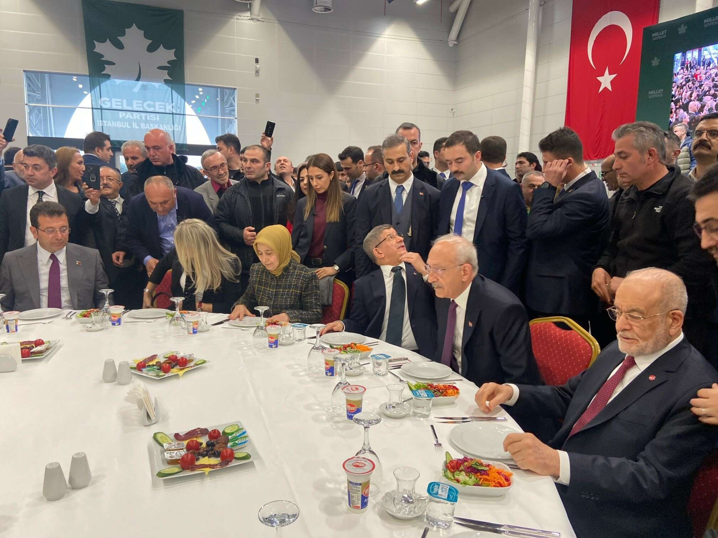 Millet İttifakı'nın Cumhurbaşkanı adayı ve CHP Genel Başkanı Kemal Kılıçdaroğlu, Gelecek Partisi İstanbul İl Başkanlığı’nın ‘Millet Sofrası’ iftar programına katıldı. Programa Kılıçdaroğlu'nun yanı sarı, Gelecek Partisi Genel Başkanı Ahmet Davutoğlu, Saadet Partisi Genel Başkanı Temel Karamollaoğlu, İstanbul Büyükşehir Belediye Başkanı Ekrem İmamoğlu ve çok sayıda davetli katıldı.