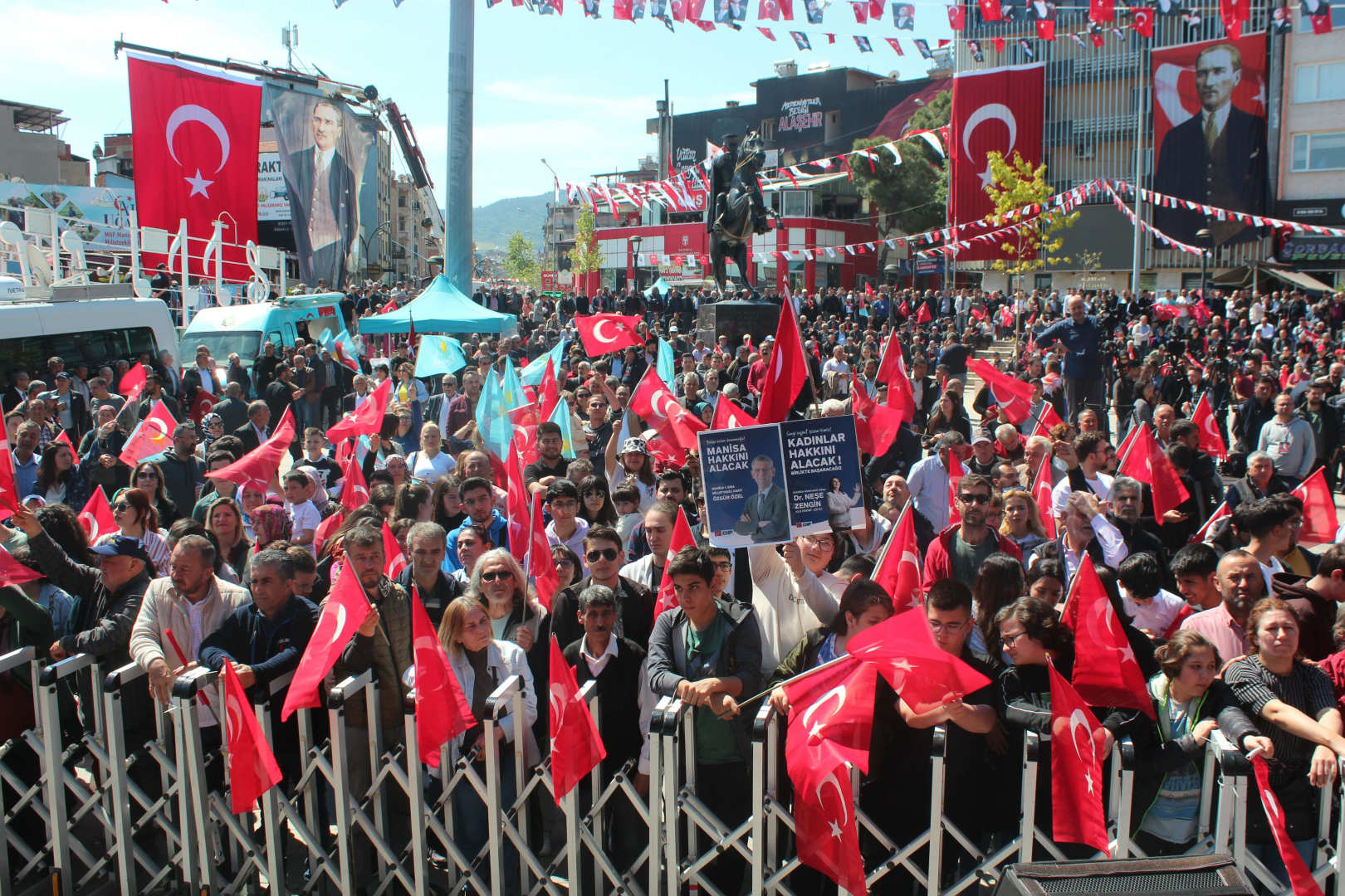 Ankara Büyükşehir Belediye Başkanı Mansur Yavaş, Manisa’nın Alaşehir ilçesinde düzenlenen mitingde vatandaşlara seslendi. Mitingin açılış konuşmasını yapan Alaşehir Belediye Başkanı Ahmet Öküzcüoğlu, 1 Mayıs 1 Mayıs İşçi ve Emekçiler Bayramını kutladı ve seçimde herkesin sandığa giderek, CHP Genel Başkanı ve Cumhurbaşkanı adayı Kemal Kılıçdaroğlu’na oy verilmesini istedi.