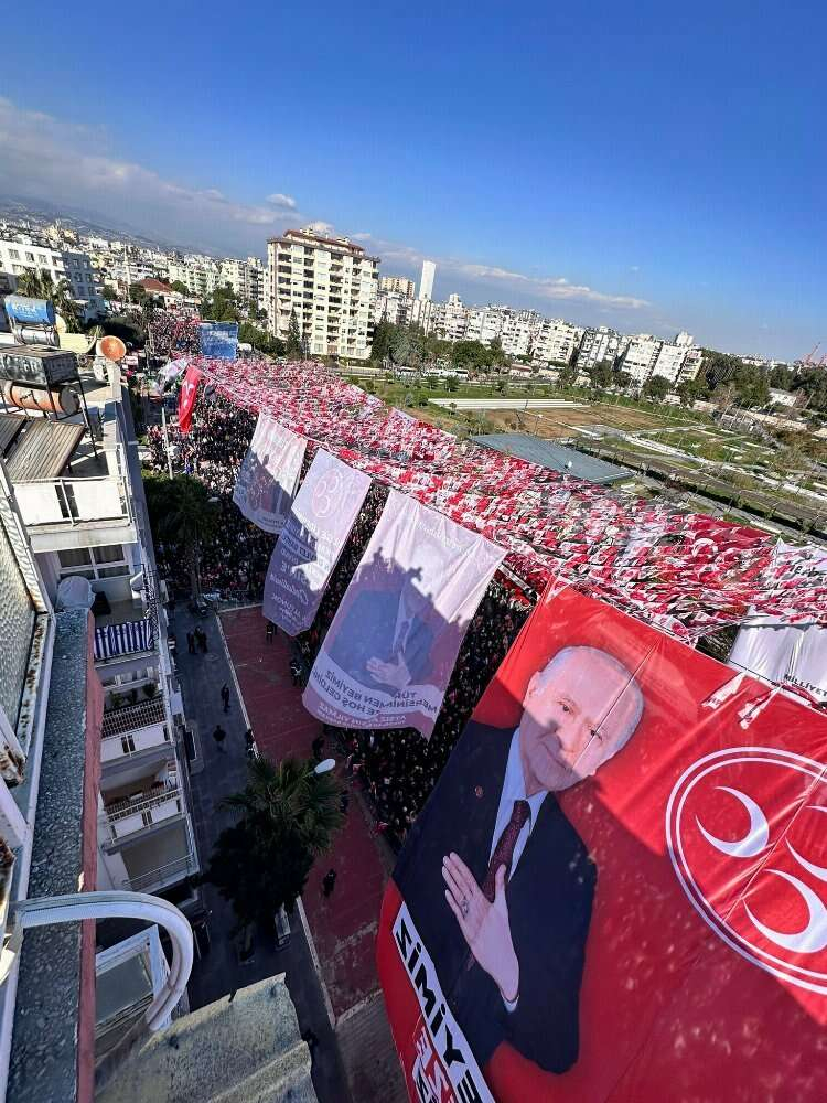 MHP yerel seçim mitinglerine aday çıkardığı iki büyükşehirle açık hava toplantılarına Mersin'den start verdi. MHP Genel Başkanı Devlet Bahçeli, "Cumhur bizim, Türkiye hepimizin" sloganıyla seçmene seslendi..