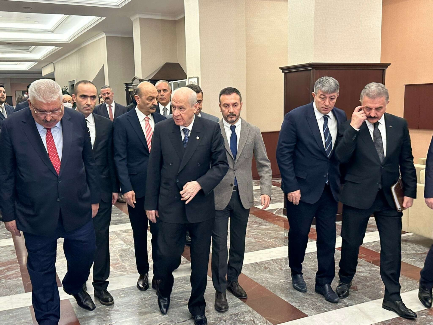Bahçeli’nin toplantı salonuna gelerek milletvekilleri, MYK ve MDK üyeleri ile bir araya gelişinin basın mensuplarınca görüntü altına alınmasının ardından toplantı basına kapalı devam etti.