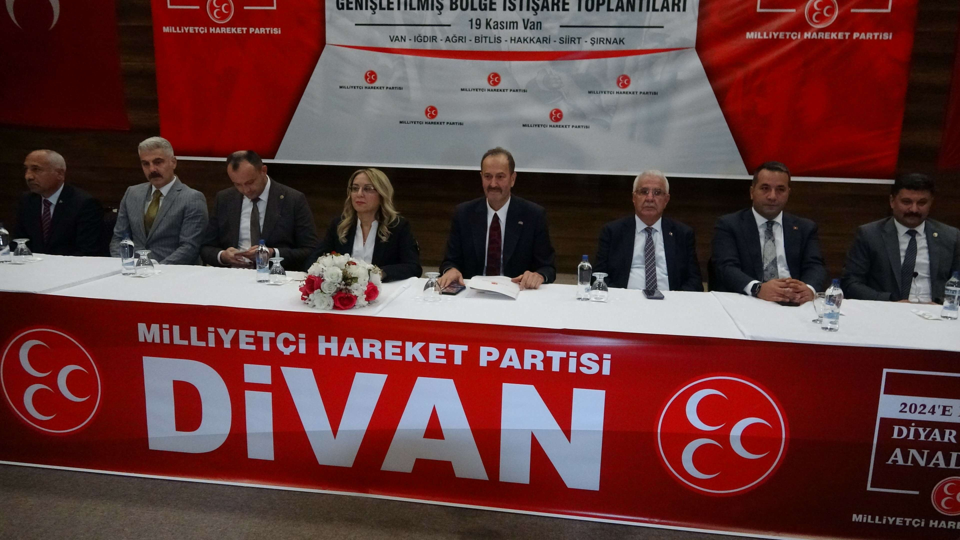 MHP tarafından '2024’e Doğru, Diyar Diyar Anadolu' temasıyla başlatılan Mahalli İdareler Seçimlerine hazırlık çalışmalarının sonuncusu Van’da gerçekleştirildi. MHP Genel Başkanı Devlet Bahçeli’nin talimatlarıyla başlatılan ve 11 bölgede gerçekleştirecek olan toplantının 10’uncusu ise Van merkezli, Hakkâri, Şırnak, Siirt, Bitlis, Ağrı ve Iğdır illerinin iştirakiyle Uygulama Oteli Konferans Salonunda yapıldı.
