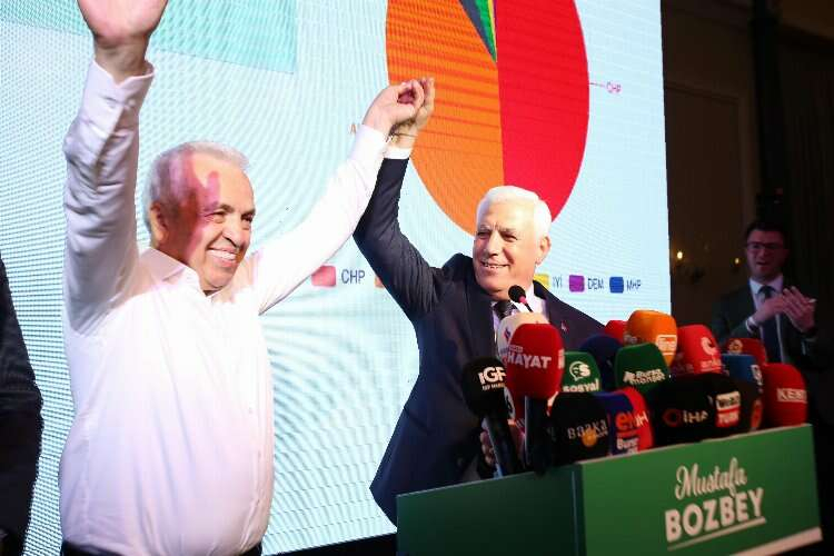 Sonuçların netleşmeye başlaması üzerine Seçim Koordinasyon Merkezi’nde önünde toplanan coşkulu kalabalığa seslenen Şadi Özdemir, kendisine oy veren vermeyen herkese teşekkür etti. Bu süreçte büyük emek harcayan, kadın kollarından gençlik kollarına bütün parti örgütüne, her zaman yanında olan eşi Nuray Özdemir, oğlu Cem Özdemir ve gelini Nehir Özdemir’e, hep yanında olan gönüllülere de teşekkür eden Şadi Özdemir artık yeni bir dönemin başladığını söyledi. Özdemir konuşmasına şöyle devam etti: “Sandık sonuçlarının henüz tamam açıklanmadı ancak şimdiye kadar yapılan açıklamalara göre büyük bir farkla öndeyiz.