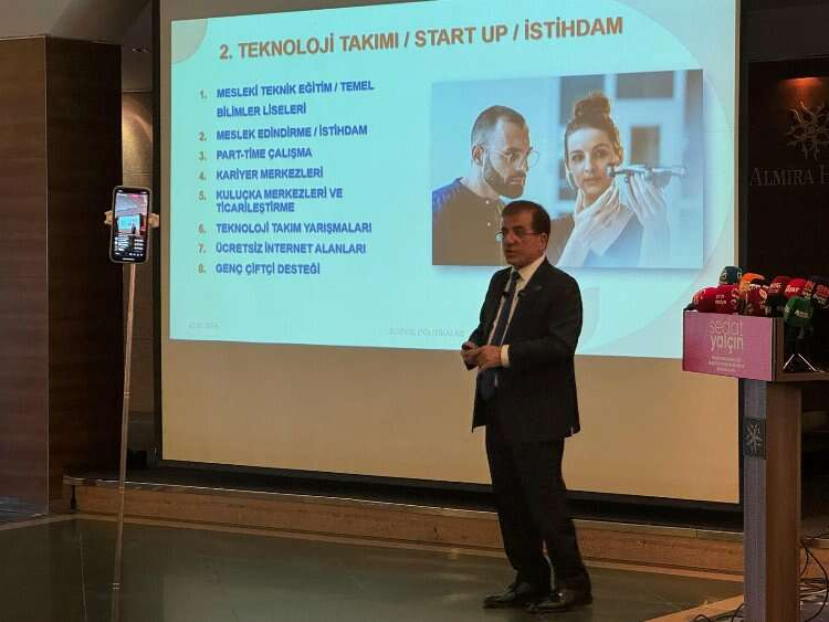 “Gençlerimizin kültür, sanat ve spor faaliyetlerinde geçirdiği süreyi Genç Refah Kart uygulamasıyla takip edeceğiz. Bu alanlarda en fazla süreyi geçiren gençlerimizi ödüllendireceğiz. Ayrıca onlara Ulaşım, Barınma Ve Kira Desteği vereceğiz. Öte yandan Meslek-Teknik ve Temel Bilimler Liseleri kurmayı ve gençlerimizin meslek sahibi olmalarını amaçlıyoruz. Buralardan mezun olduklarında onlara istihdam desteğinde bulunacağız. Kariyer Merkezleri, Kuluçka Merkezleri ve Ticarileştirme Merkezleri kuracağız. Teknoloji Takım Yarışmaları düzenleyeceğiz. Ücretsiz İnternet Alanları kuracak ayrıca genç çiftçilerimizi destekleyeceğiz. Ücretsiz Spor Okulları kuracağız. Bursaspor için içerisinde farklı oyunların olduğu bir E-spor Takımı kurmayı hedefliyoruz. Büyükşehir ve Bursaspor ortaklığında E-spor Olimpiyatları düzenlemek istiyoruz. Turizme Yönelik Jimnastik Gösteri Takımı kurarak Bursa turizmi için büyük bir gelir kaynağı sağlayacağız. Spor ve Kültür-Sanat Temalı Öğrenci Yurtları inşa ederek genç sanatçıları destekleyeceğiz. ” şeklinde konuştu.