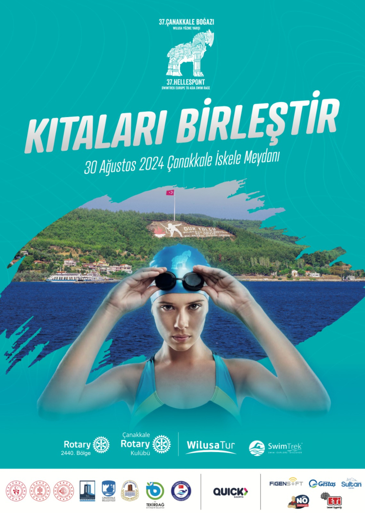 Çanakkale Rotary Kulübü ile Wliusa Turizm’in proje ortaklığında organize edilen ve Avrupa ile Asya’yı birbirine bağlayan 37. Çanakkale Yüzme Yarışı, bu yıl da yerli ve yabancı yüzlerce yüzücüye ev sahipliği yapacak. Her yıl olduğu gibi bu sene de 30 Ağustos Zafer Bayramı’nda, “Kulaçlar temiz denizler için” mottosuyla düzenlenecek olan kıtalar arası organizasyon, dünyanın en eski yarış rotalarından biri olarak kabul ediliyor. Yarışmaya katılacak yerli ve yabancı yüzme tutkunları, Çanakkale’nin tarihi atmosferinde boğazın akıntı sularına meydan okuyacak. Saat 08.00’da Eceabat ilçesi kumsalından başlayacak olan yarış, 6,5 kilometrelik etabın ardından Çanakkale İskele Meydanı’nda sona erecek. Daha sonra dereceye giren sporculara aynı meydanda ödülleri takdim edilecek.