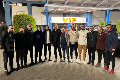 Bordo-mavili taraftarlar, teknik direktör Abdullah Avcı ile fotoğraf çektirirken 'Bu şehir size tekrar bekliyor hocam" diyerek İstanbul'a uğurladı.