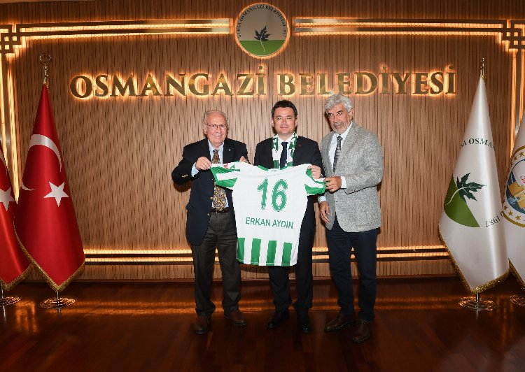 Bursaspor Başkanı Sinan Bür ve Yönetim Kurulu Üyeleri, Osmangazi Belediye Başkanı Erkan Aydın’ı ziyaret etti. Başkan Aydın, Bursaspor’u eski günlerine döndürmek için desteğe hazır olduklarını ifade etti.