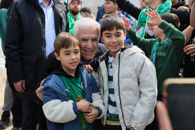 Başkan Bozbey’de Kültürpark Eski Atatürk Stadyumu’nda taraftarlarla birlikte maçın heyecanına ortak olurken, Bursasporlu taraftarlar tarafından tezahüratlarla karşılandı.