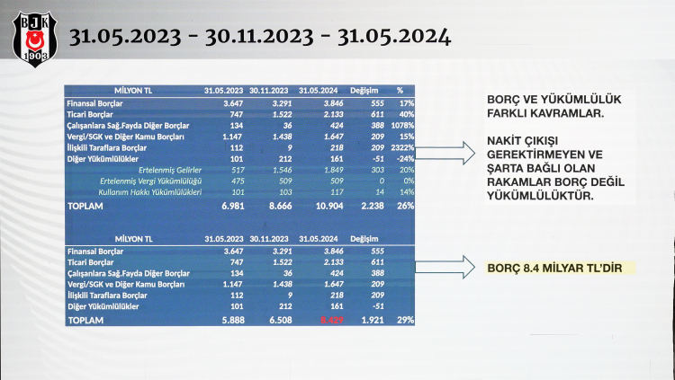 Beşiktaş Genel Sekreteri Kaan Şakul, siyah-beyazlı kulübün borcunun 8 milyar 429 milyon TL olduğunu açıkladı.